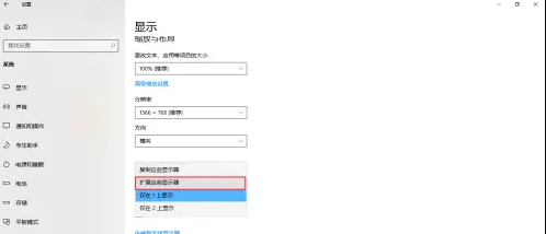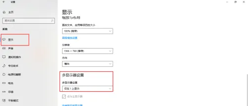 打开Windows设置-显示面板,把“多显示器设置”选中“扩展这些显示器”。