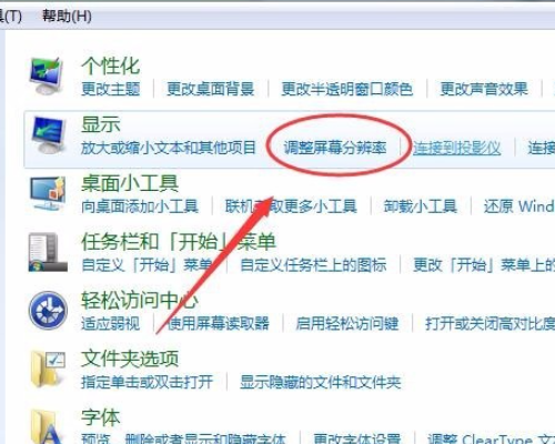 2、分屏就是和屏幕有关,那么就找到第二项“显示”,直接单击打开“调整屏幕分辨率”弹出对话框。