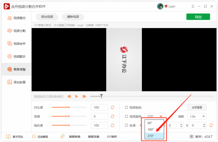 第三步、如图,在这里选择视频旋转的度数,视频是竖版的,所以我们选择“270°”