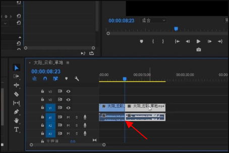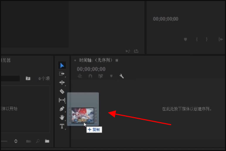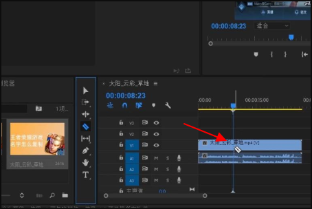 3、利用标记入点和出点,快速选择需要的画面,从素材库中拖拽到轨道上。