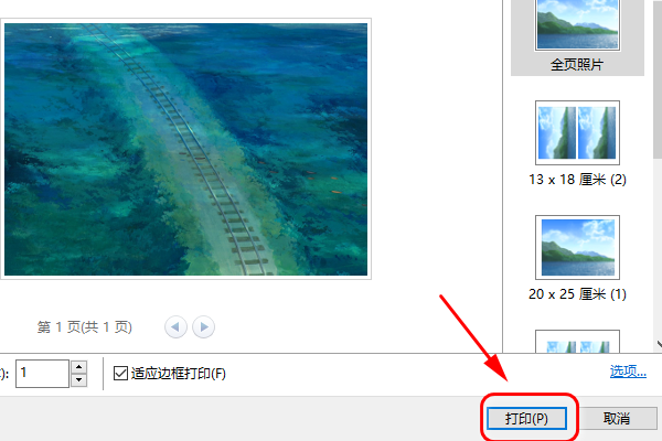 打印不出图片也有可能是因为图片太大了,我们可以在打印图片页面中,在右侧选择自己需要的尺寸,或者勾选页面下方的适应边框打印,这样就可以调整好图片的大小在进行打印了。