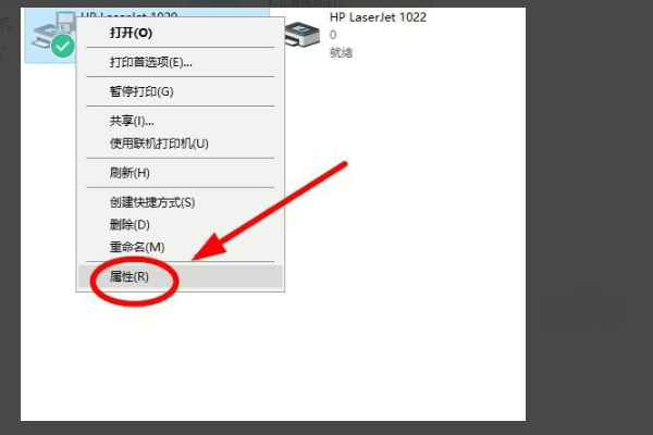 1、同样选中默认的打印机,使用鼠标右键。在右键菜单中选择“属性”。