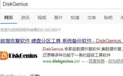 3、百度下载DiskGenius硬盘恢复软件,安装打开。