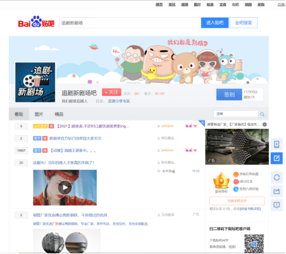 追剧新剧场贴吧(https://tieba.baidu.com/f?ie=utf-8&kw=%E8%BF%BD%E5%89%A7%E6%96%B0%E5%89%A7%E5%9C%BA)