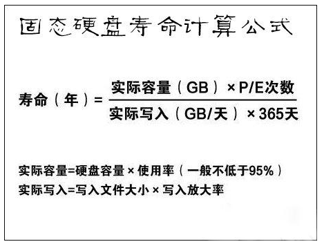 固态硬盘内部闪存完全擦写一次叫做1次P/E,因此闪存的寿命就以P/E作单位。34nm的闪存芯片寿命约是5000次P/E,而25nm的寿命约是3000次P/E。随着SSD固件算法的提升,新款SSD都能提供更少的不必要写入量。