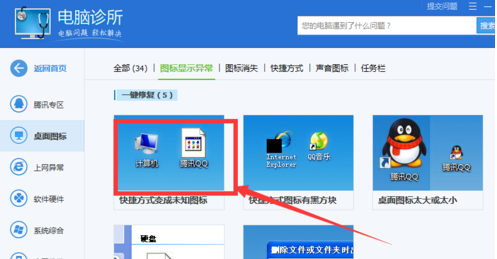 3、找到“图标显示异常”或“快捷方式变成未知图标”;