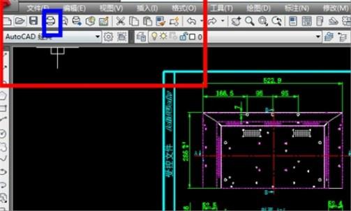 1、首先电脑打开cad软件中需要进行操作的图纸,点击左上角打印的图标即可。