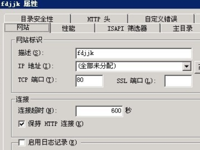 4、然后选网站选项,可以看到启用日志记录。打钩然后选择右边的属性可以设置日志周期和文件属性,选择日志保存的目录。