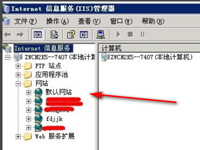 2、到控制面板找到iis管理器,点开网站,可以到下面有你创建的网站。选择要配置的网站。