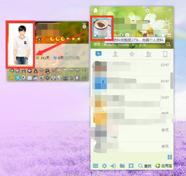 可以将部分QQ秀形象融入背景里,而且此模式中,QQ秀形象可以出现在聊天背景里。