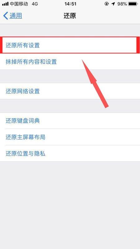 2、打开设置,点击通用,还原,还原所有设置,输入密码即可。