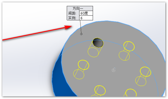5、使用特征里面的圆周阵列工具,进行阵列,其他设置如下图所示,确定。