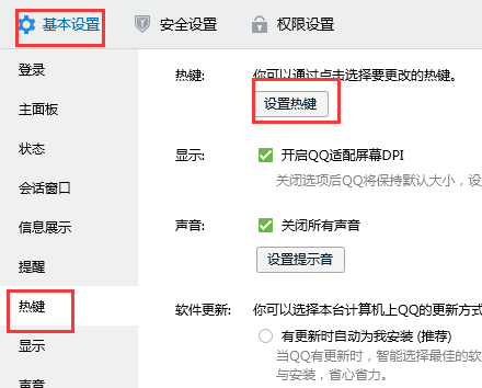 三、进入“基本设置”,点击“热键”,点击右边的“设置热键”。