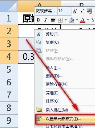 3.右键单击,在弹窗内选择设置单元格格式