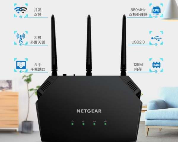 作为华为WS5200的升级版,增强版的升级,除了支持端口盲插和CPU外,还为5G WiFi配备了两颗信号放大器,提升5G信号的穿透力。 价格方面,这款路由器200元出头,特别适合入门级的用户使用。 网件R6850 网件是专注路由器很多年的一个厂商,产品自然不用说了。网件R6850也是一款千兆无线路由器,搭载博通双核800MHz的CPU。