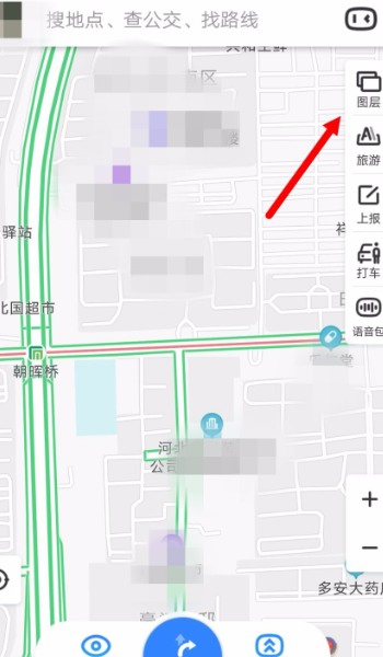 2.点击展开图层菜单后,找到地图类型下方的【全景地图】,点击(如果无法点击,将地图放大到你想要查看的位置,再选择全景地图);