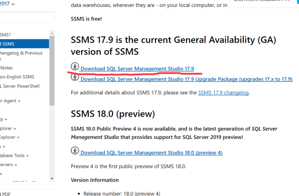 此版本的 SSMS 适用于所有受支持 SQL Server 版本 (SQL Server 2008 - SQL Server 2017),并且在最大程度上支持与 Azure SQL 数据库和 Azure SQL 数据仓库中的最新云功能配合使用。