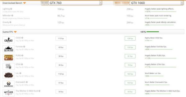 升级GTX1660后,显示性能理论值比目前翻倍还要多一点,玩游戏也比目前好80%左右。
