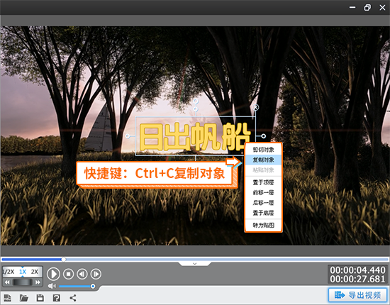 选中字幕,鼠标右键选择“复制对象”快捷键:Ctrl+C,定位到新的时间点,右键选择“粘贴对象”快捷键:Ctrl+V,双击字幕,在弹出框中修改文字即可。