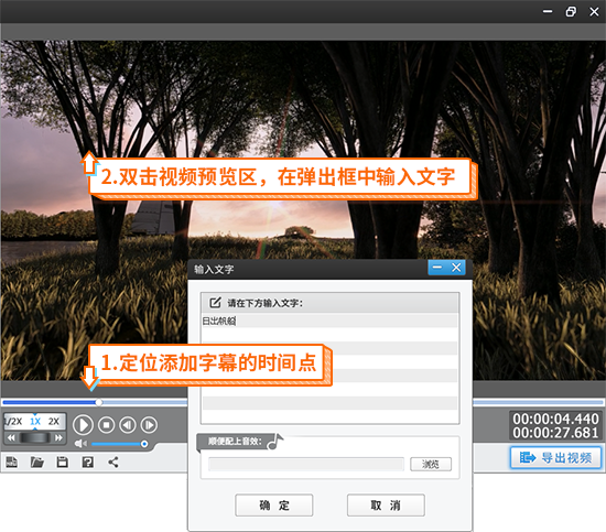 鼠标在右侧的视频预览区下方的时间进度条上,定位到想要添加字幕的时间点,然后点击“字幕特效”,鼠标双击右侧的视频预览区,在弹出框中输入文字。在左侧的特效列表中,勾选字幕特效。在右侧的参数设置处,修改字体、大小、排列方式、特效时长等。