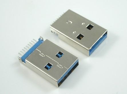 2、从外形上来看,USB3.0的插口是内部有九个金属触点,下方四个,上方五个,下图为USB3.0的U盘插头样式,供参考。