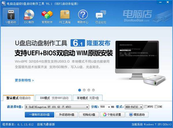(注意:使用电脑店U盘启动盘制作工具2.0以及之前版本制作过的U盘如果制作失败请先执行初始化U盘)