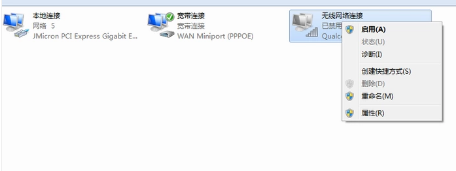 3、在“网络和共享中心”页面后,如果无线网络连接是灰色的,我们就在无线网络连接上单击右键,选择“启用”。