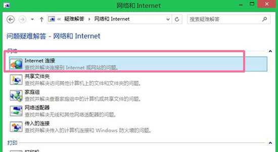 进入网络和Internet,选择第一项“Internet连接”进行分析诊断,帮助用户进行排解,并显示各类的修复方案。