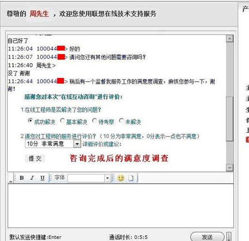 6、咨询完成以后,由员工发送满意度调查,用户可以选择