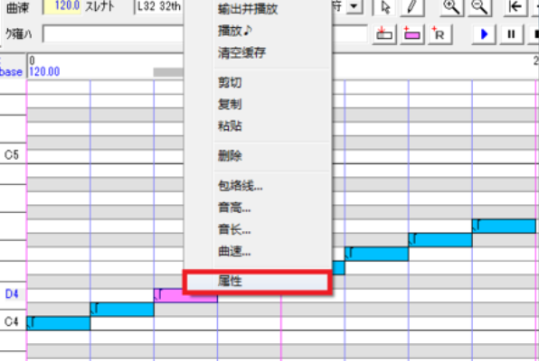 5、可以通过左右拖动音符来修改音符长短,亦可选定音符右击属性,在音符属性选框中修改。