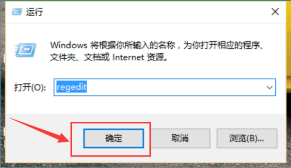 二、在运行输入框中输入”regedit“,点击确定,如下图所示: