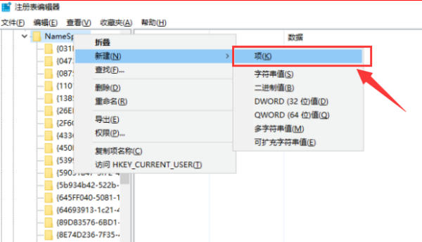 四、在该目录下新建项:{645FFO40-5081-101B-9F08-00AA002F954E},如下图所示: