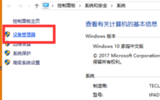 2、在打开的“系统”窗口中,点击“设备管理器”项