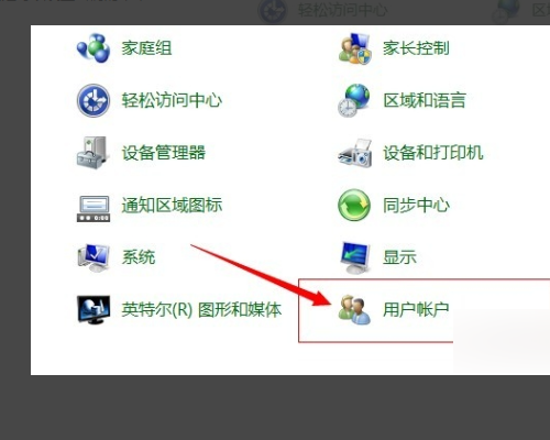 2、打开了控制面板后,再次找到用户与安全这个图标,这里面就是可以设置密码的菜单了。