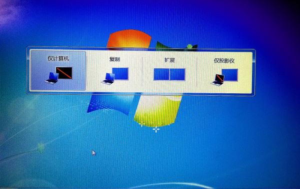 2.此时再在电脑上操作同时按下Windows徽标键+P键选择扩展形式(可以选择仅计算机/复制/扩展/仅投影四种扩展形式)