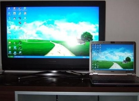 3、设置好分辨率后退出查看液晶电视,就可发现电视上可以显示笔记本上的画面了。