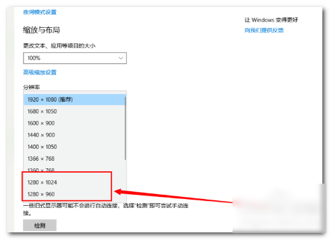 2、在显示设置中将你的分辨率调低,可以直接降到1024*768,这个几乎是所有显示器都支持的,然后在慢慢往上加。