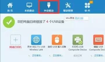 第三步:用“驱动人生”对打印机设备驱动程序的修复操作。在“驱动人生”程序主界面中,切换到“外设驱动”选项卡,点击“修复驱动”按钮。