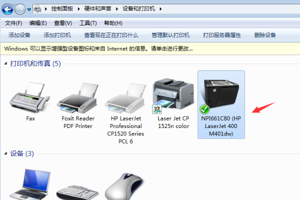 也可以检查一下与电脑连接的打印机是否已经被设置为默认的打印机,由于在许多Windows程序中,单击“打印”命令时,程序会将当前打开的页面内容传送到默认的打印机上。