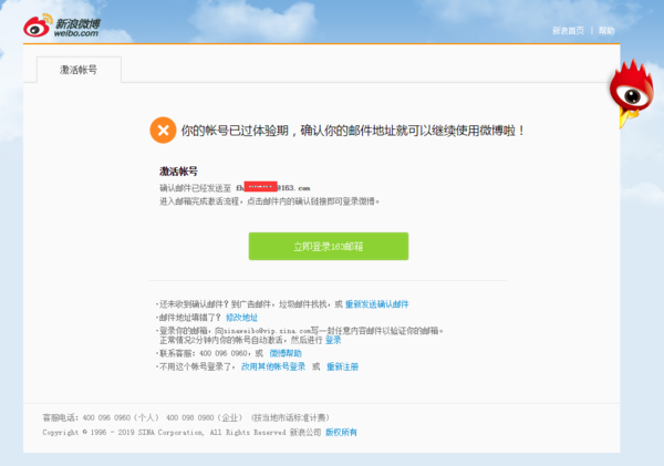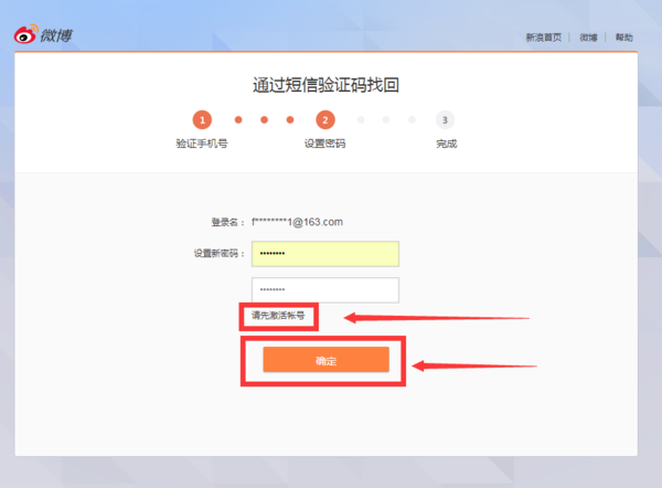 【第三步,激活帐号】:设置好新密码(一定要记好大小写),有时会提示:请先激活帐号(这一步是非常无语的,点击什么都无用,所以到这一步就算结束了,可以点击几下“确定”,然后关掉页面。再回到微博登录,用新更改的密码进行登录)