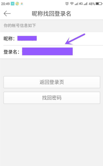 4)如果前面资料输入均正确,系统查询出你的登录名(邮箱或手机号),请务必牢记!