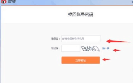 2)输入微博登录名。按照提示输入验证码,点立即验证。