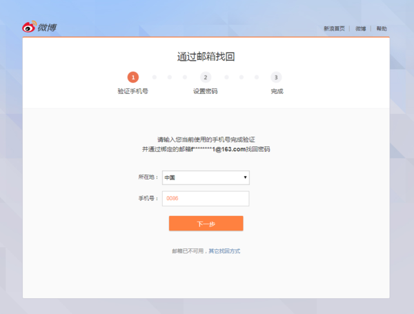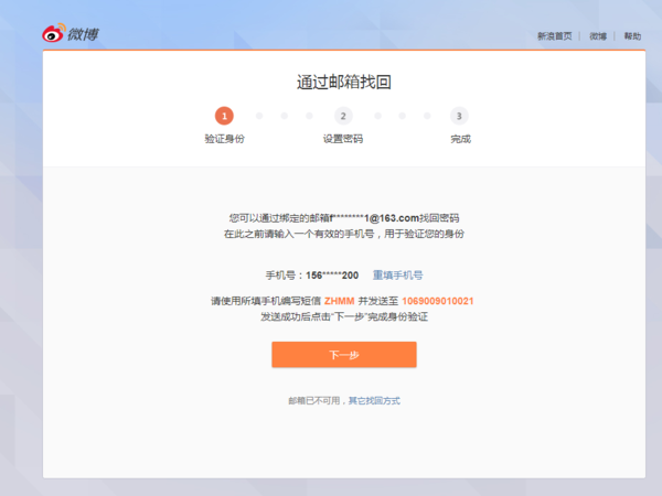 我是根据:OrosefinchO这位网友提供的帮助找回的。他没有截图,我来补充一下。(16年女儿出生,我为她注册了微博,并发了一条微博,这个账号对我来说非常重要。所以我尝试了各种办法一定要找回。笑!