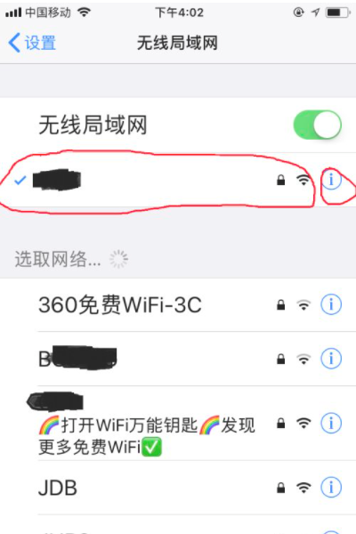 2、点击选中连接的WiFi,点击后面的叹号,进入无线网络设置。