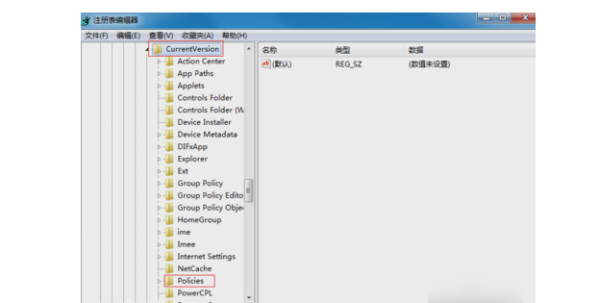5、然后展开子目录,双击“CurrentVersion”,再次展开后,双击名为“Policies”