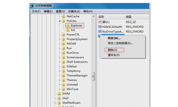 7、右边有一个“NoViewContexMenu”的值,把这个值删除了,再重启下电脑。就可以了