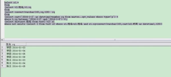 wherenotexists(select1fromtests2wheres1.姓名=s2.姓名ands1.rq=convert(varchar(10),cast(s2.时间asdatetime),120))