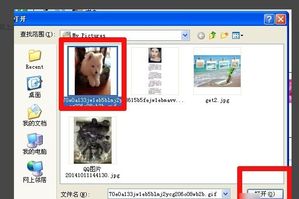 5、弹出窗口,选中喜欢的图片,点右下角的“打开”。
