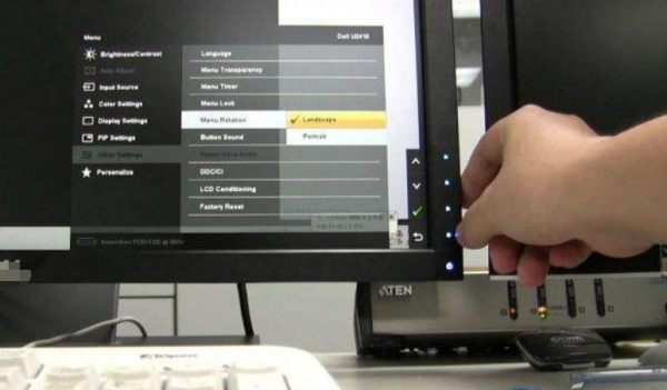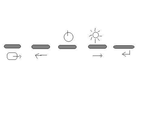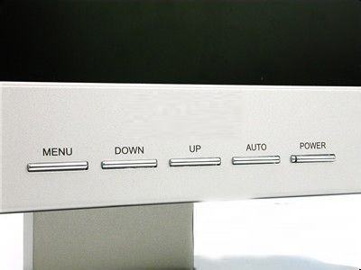 以下图为例:显示器外壳上一般都会有五个按键,从左至右依次为:菜单、向下、向上、自动、电源。其作用分别为:调出显示器设置项目菜单、向下移动以选择选项、向上移动以选择选项、自动还原、电源开关。不同品牌略有不同,但大同小异。