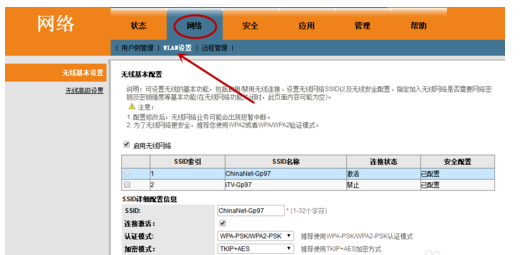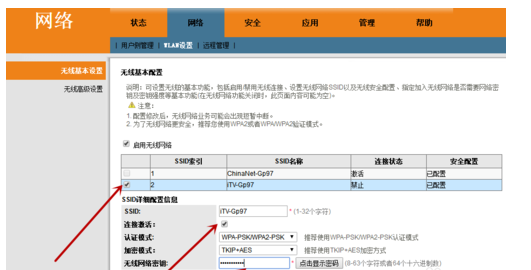 3、勾选ITV选项→点击链接激活→修改无线网络密钥→确定。